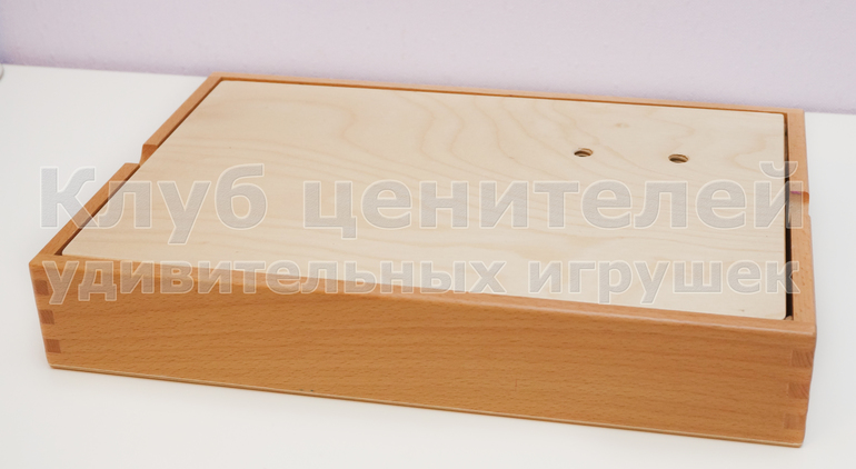Внутри красочной коробки обнаруживается довольно увесистый деревянный ящичек, на первый взгляд ничем не примечательный, если не считать наличия на крышке двух дырочек :)