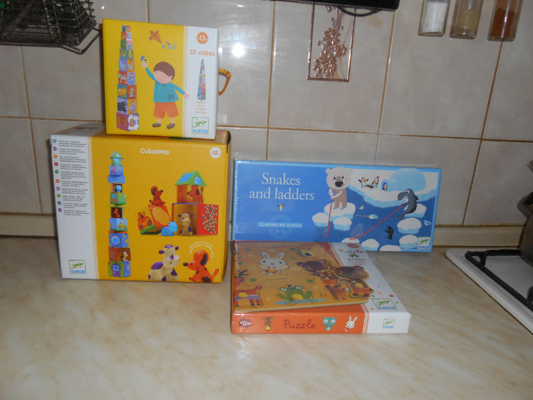 Поздравляю!!! Очень хорошие игрушки! Верхние кубики Djeco -наш хит, каждый день бесконечное количество раз играем.