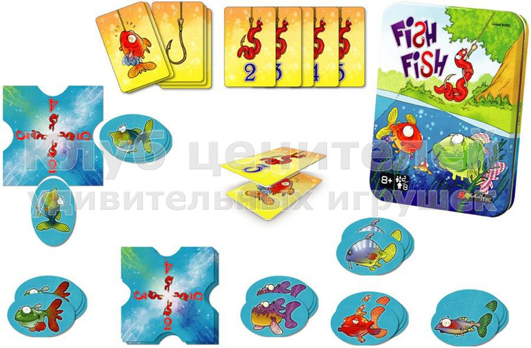 Каждый игрок получает индивидуальный планшет (карточка добычи) и комплект из 4 одинаковых рыб.