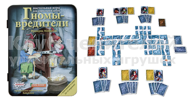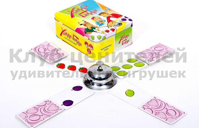 Состав игры: 80 карт, на каждой из которых по 3 картинки, 1 звонок, правила игры на русском языке. Размер коробки: 17 х 13 х 7 см.