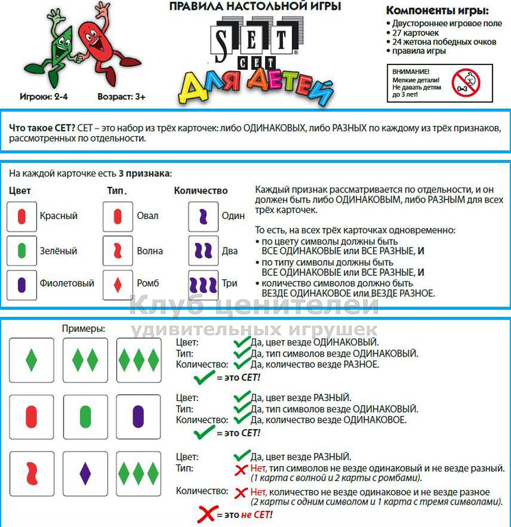 Описание Настольная игра Сет для детей - это детская версия известного Сета, одной из лучших игр на внимательность, сообразительность и умение сопоставлять.