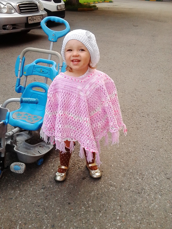 НАШИ ХВАСТУШКИА на календаре - осень. Старший пошел в садик, а мне, перед выходом на работу захотелось что-то теплое связать. На мою работу будем с дочкой вместе "выходить", ехать до нее долго и на машине. В общем вещь нужна была теплая, легкая, но в то же время, которую можно было бы скинуть в машине "легко и изящно"))) И я нашла таки вариант и связалось ОНО - Пончо!