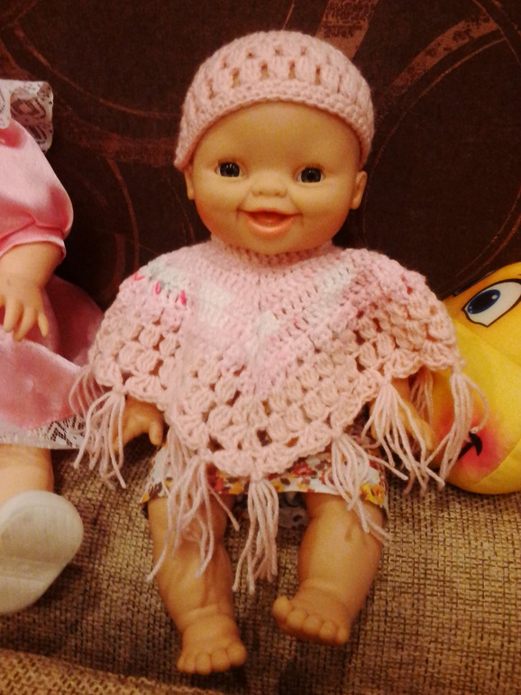 Остались ниточки, вроде немного, но полноценную вещь не свяжешь. Я ж тот еще куркуль, жалко мне ниток валяющихся. И связался еще комплектик на любимую куклу дочки.