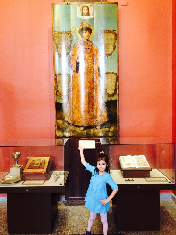 Экскурсия в музейЗнаете, Катя удивительный человек! Благодаря ей я и мой ребенок столько всего для себя открыли...я все время себя оправдываю, что у меня двое детей и потому я не имею столько времени, чтобы гуляя изучать, изучать гуляя, и все это так легко и с пользой для других....Кать, спасибо тебе большое!! Не останавливайся! Еще больше тебе энергии и новых открытий! Что до исторического музея, то это было такое открытие для нас с Аришей!! И, если, саму экскурсию Ариша выдержала на половину, то в других залах она не прошла мимо ни одного стенда и стеллажа. Особенно где представлена кухонная утварь , предметы домашнего обихода, древние гребни, бусы и другие украшения...колыбелька и первая одежда...все у Ариши вызвало огромный интерес....а потом мы попали в зал с древними иконами...и мой ребенок стал там молиться, встав на колени.....в общем, это было невероятно! Я и сама была под огромным впечатлением, так как была там в первый раз....Кать, давай еще что нибудь там устроим!! А пока фото на память)