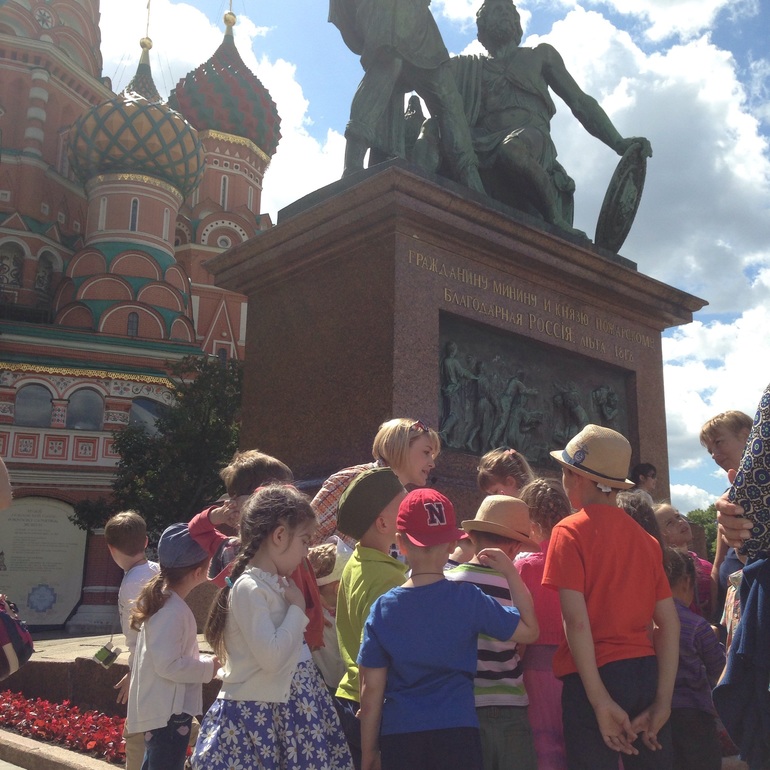 Экскурсия проходила в виде квеста. Детей разбили на две команды - Романовы и Рюриковичи, раздали им задания и карты. В обсуждении прочитала, что многие не согласны с тем, что детей разбили на команды. А мне понравилось это. И капитана команды выбрали. мне кажется, так было интересней. Родители помогали прочитать задания, а вот отвечали дети сами полностью. Молодцы, видно было, что им интересно. На самой экскурсии дети искали доказательства того, что вокруг Кремля проходил ров, узнали почему Лобное место носит такое название и что там происходило, для чего была построена Царская башня, историю строительства Храма Василия Блаженного, значение слова "Блаженный", кто такие Минин и Пожарский, и саму историю Кремля, кто такой Юрий Долгорукий и Иван Калита... Информации много, но Алена смогла преподнести ее именно для детей, рассказать так, что им было интересно и они ее слушали. Вообще она как-то сразу смогла установить контакт с детьми и держать их внимание на себе. Я перед такими людьми искренне приклоняюсь. Это большой талант. Да и микрофон был весьма кстати, слышно было всем.