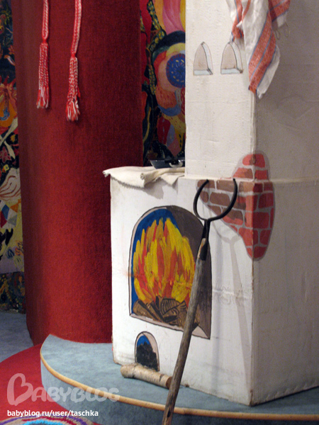 В Комнате сказок была самая настоящая русская печка, с горшками-чугунками, и даже с ухватом.