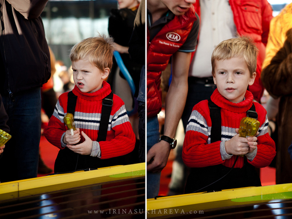 Но ребенок застрял у гоночной трассы и пока не подошла очередь заездов, где он участвовал, отказывался куда-либо отходить.