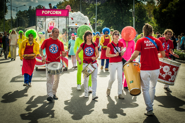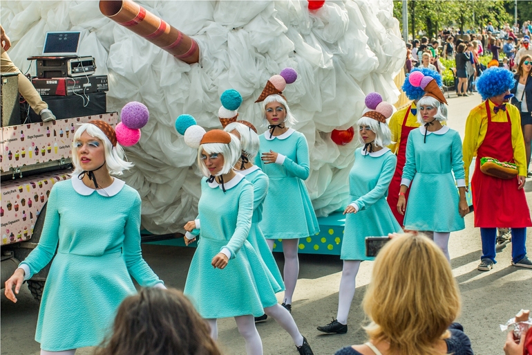 6 и 7 сентября жители Москвы отмечали День Рождения своего города. Программа празднования была богатой, разнообразной и интересной. Ознакомившись с планом мероприятий, мы решили прогуляться в Парк Горького. На время празднования парк преобразится в мир мюзикла: музыка звучала отовсюду! По аллеям курсировало мюзикл-шествие, проходили занятия по вокалу, играли оркестры, выступали ВИА.