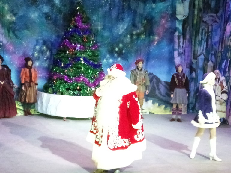 Теперь о представлении. Оно супер!!! Мои дети (да и я, что уж) были в восторге! Как психолог, могу отметить что представление ориентировано именно на детскую аудиторию, страшные персонажи не проявляют себя таковыми, никакой агрессии или намёков на жестокость в спектакле нет. Зверей много, они ухоженные и очень красивые. Костюмы все новые и сделаны с большим вкусом. Сцена старенькая, но в спектакле использовано много световых эффектов, так что этого просто не видно. Периодически в зале начинает идти снег из мыльной пены - очень интересное решение. Дед Мороз - настоящий! Прям вот таким он и должен быть! Ни один ребенок в зале не заплакал при его появлении.
