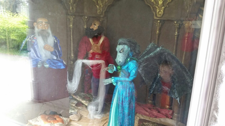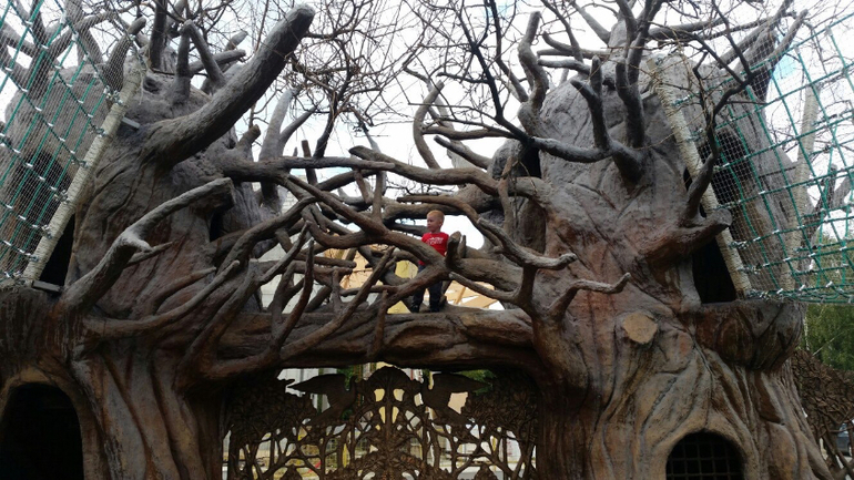 Качели в виде паутинки , стоит там замок огромнейший ну просто красивейший.