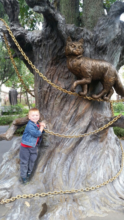 В парке этом есть сказочные сооружения в виде скульптур из сказок Пушкина . Горка в виде домика бабы яги, фонтан где сидит Кащей бессмертный и чахнет над златом. Кругом охраняют площадку 33 богатыря это забор такой у них. . Есть ещё домики там на кнопочку нажимаешь и слушаешь сказку. О рыбаке и рыбке, сказка о попе и работнике его балде, золотой петушок и так далее таких домиков очень много и там сидят персонажи и двигаются и песенки поют.