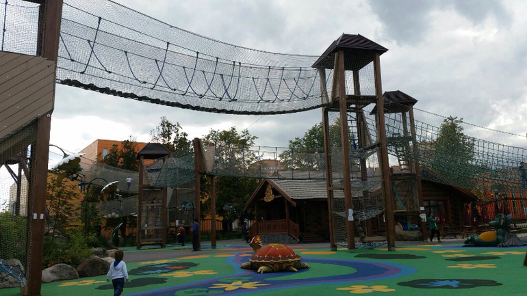 А я за закрытие, если вы были в совхозе на площадке, то очевидно еще успели возможно прогуляться по округе... Так вот не далеко от детской плащадки есть парк с прудом, Он огорожен, есть кпп с охраной и турникетами которые открываются только от ключей. И он выглядит великолепно, есть беседки и так же дет.площадка. Почему это должно быть общественным местом, если за это платят те кто там живет и работает? Что касается Парка сказок, то насколько я помню его строили для тех новых многоэтажек которые рядом построены и как только их заселят площадка перейдет в их ведомство. А по теме, да отличная площадка для детей. Вот к чему нужно стремится в каждом дворе!!!
