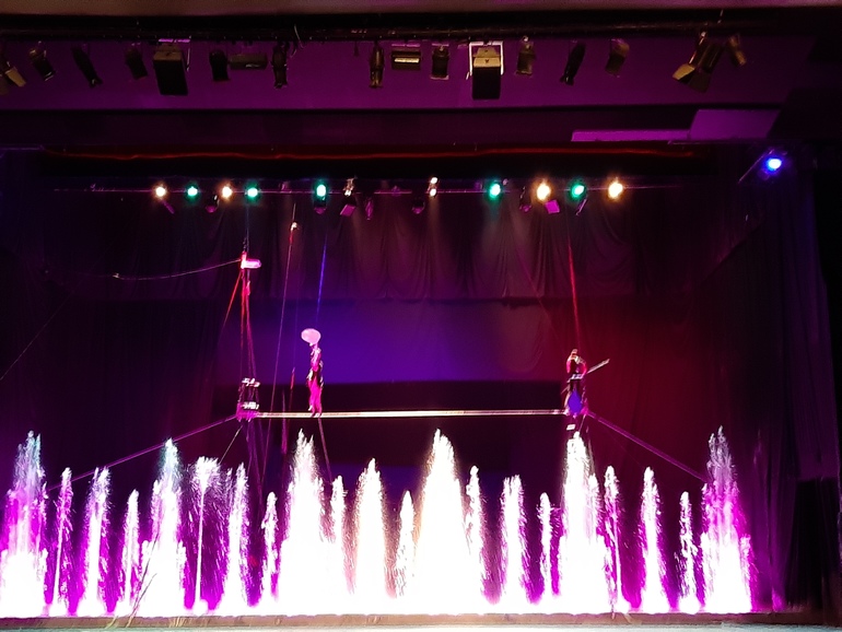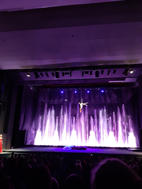 Кстати, за счет воды и льда, в зале холодно. В антракте мы спускались в гардероб за тёплыми вещами.