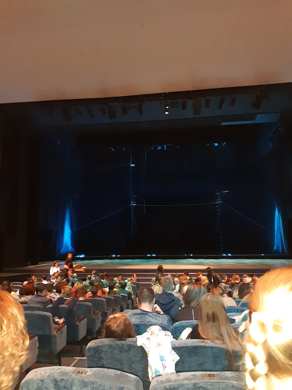 Места в зале у нас были в 15 ряду партера в самой середине возле прохода. Подъем хороший, видно было отлично. Для небольших детей на местах разложены подушки.