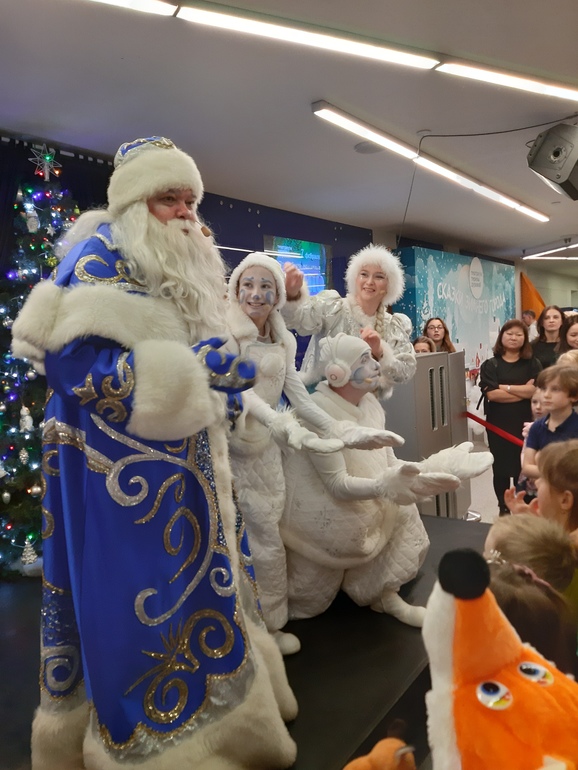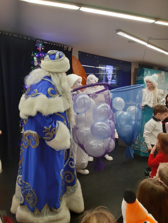 Спектакль состоит из двух частей и одного антракта. В антракте в фойе Дед Мороз, Снегурочка и Снеговички развлекают детишек.