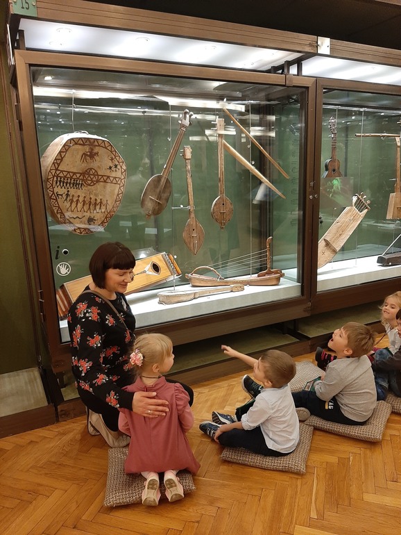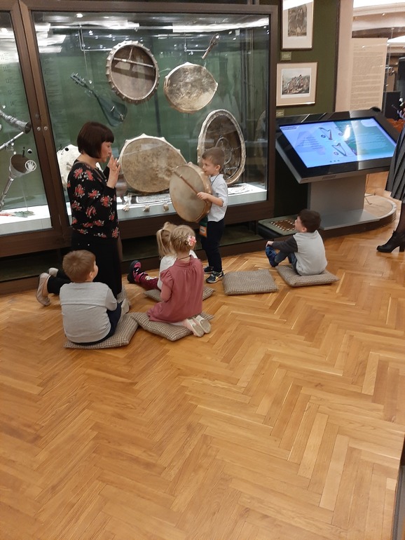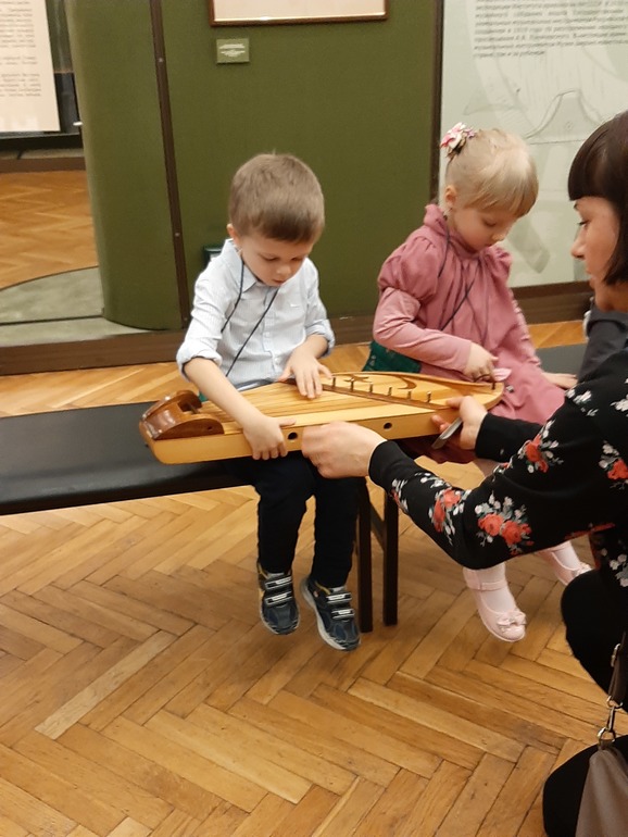 Очень понравилось и Яру, и мне. Экскурсия проводилась в игровой форме - детям нужно было найти музыкальный инструмент, для игры на котором не требуется музыкальное образование или подготовка. Сначала дети были пастушками и изучали древнерусские инструменты, а потом превратились в шаманов и знакомились с музыкальными инструментами северных народов. В результате искомый инструментом оказалась шарманка.