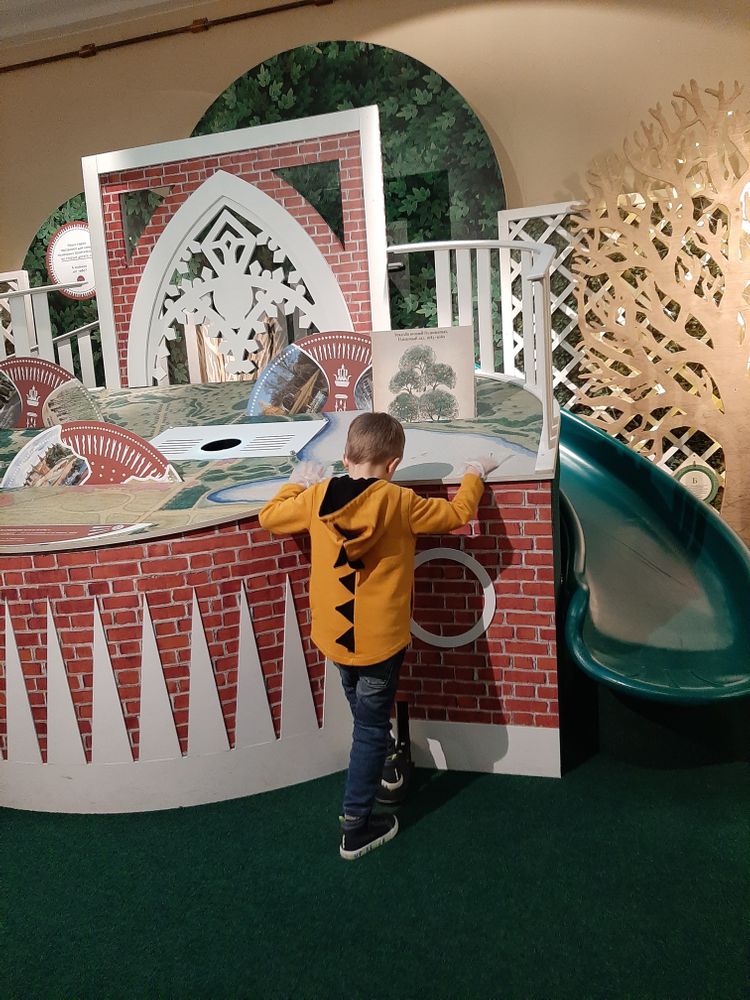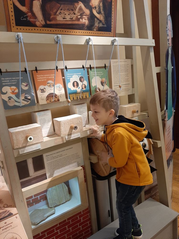 Чего там только нет! Стань архитектором, сочинил свою оду, спой, переоденься для спектакля, очень много всяческого интерактива. Но для детей постарше тоже будет интересно, так как информации в разных окошках, стендах тоже много.