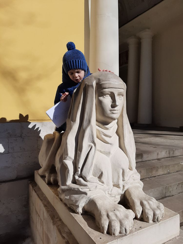 В путеводители задание - придумать загадки Сфинкса. Яр нашептывант Сфинксу придуманную им загадку.