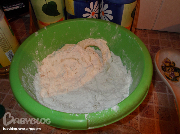 После обваливаем их в муке. Берем муку на глаз, и немного солим, перчим, и добавляем головку чеснока, среднего, можно побольше, кто любит поострее.