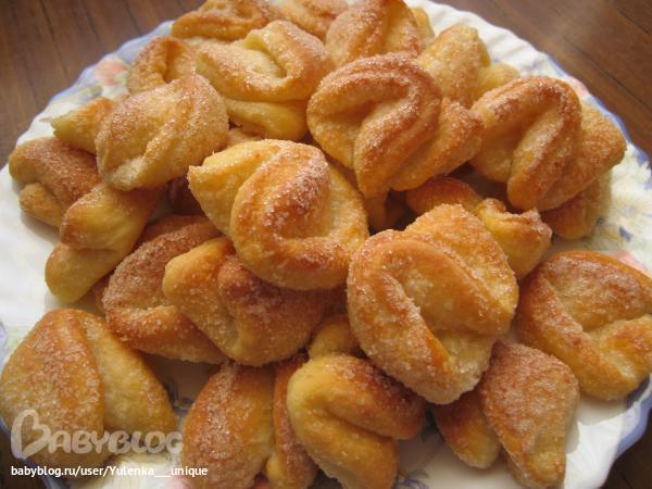 - Получившегося печенье обмакните снова в сахар, а затем выложите его на лист сахарной стороной вверх и выпекайте до готовности.