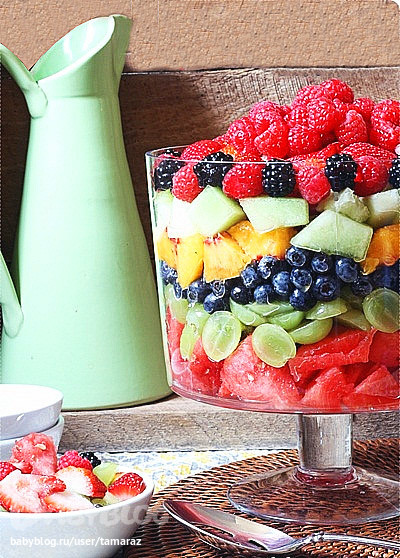 Привет! Сегодня хочу поделиться рецептом очень красивого фруктового салата. Недавно побаловала своих домочадцев такой красотой.