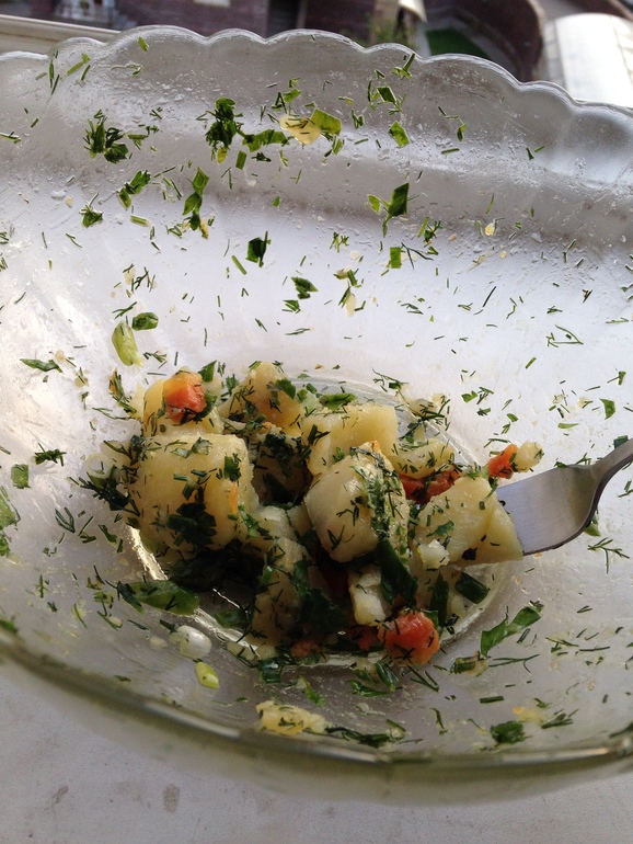 На фото все, что осталось от салата. Это один из моих любимейших, не могу не поделиться. В рецепте есть секрет, как сделать его необычайно вкусным и душистым. Я же еще добавила отварной моркови и петрушки. А третий секрет от меня: масло должно быть обязательно нерафинированным и душистым.