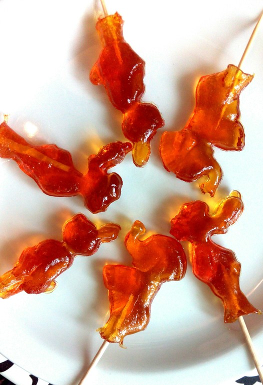 А мы вот по такому рецепту делаем:на 3 ст. ложки сахара 6 ст. ложек воды или сока. Мы делаем 4 воды и 2 сока.Все это довести до кипения помешивая и до карамельного цвета и запаха...Затем разливаем по формочкам и замерзать отправляем в морозилку минут на 15.Результат на 5+Разливаем по таким формочкамПодробнее рецепт и процесс приготовления >>> тут <<<<