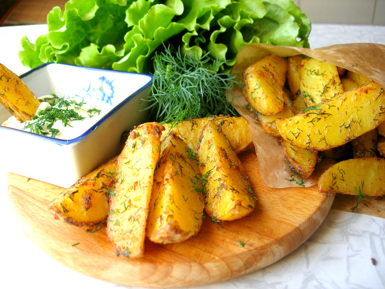 Блюда из картофеляВсем нам давно известно, что фастфуд вредит нашему здоровью, но я для своих близких нашла отличную альтернативу. Блюдо получается не менее вкуснее, чем в McDonald's или KFC, а приготовлено из натуральных домашних продуктов. Рецепт такого картофеля, отлично подойдет для семейного ужина или посиделок с друзьями.
