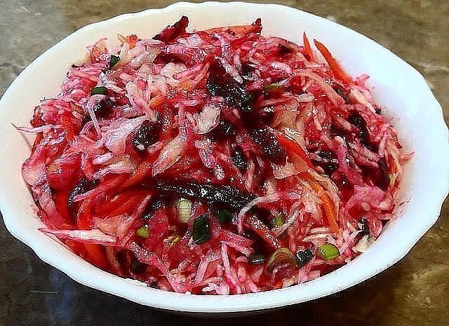 У нее он назывался " Кремлевская хряпа". Она писала, что именно вот такую капустную закуску очень любил Леонид Ильич Брежнев. И что этот рецепт « пошел в народ» из кухни самого Кремля.