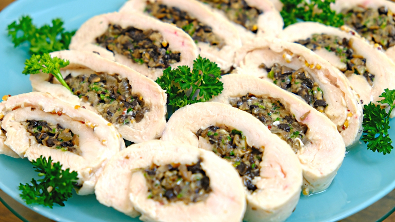 Куриный рулет с грибами и сыром - просто, вкусно и красиво!