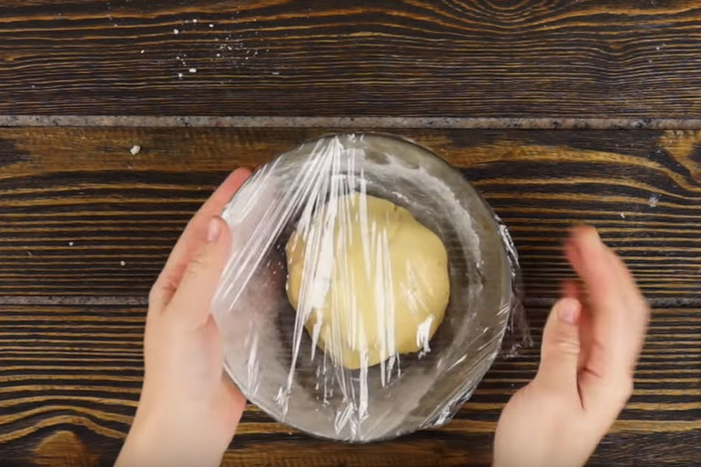 Делим тесто на 2 части. 1\3 мы отправляем в морозильник на 30 минут,