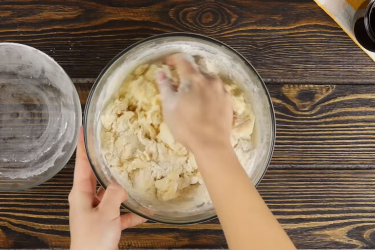 Добавим муку в 2-3 подхода. На 3-ем подходе замес теста начнем делать руками.