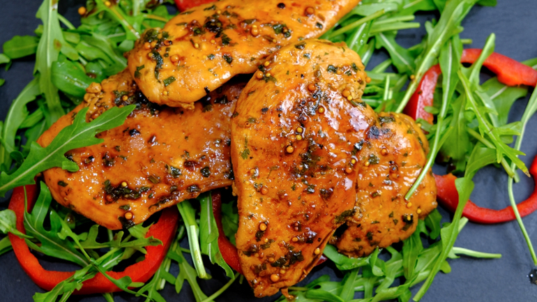 1. Для маринада: измельчить петрушку и чеснок. Добавить соевый соус, мед и дижонскую горчицу.