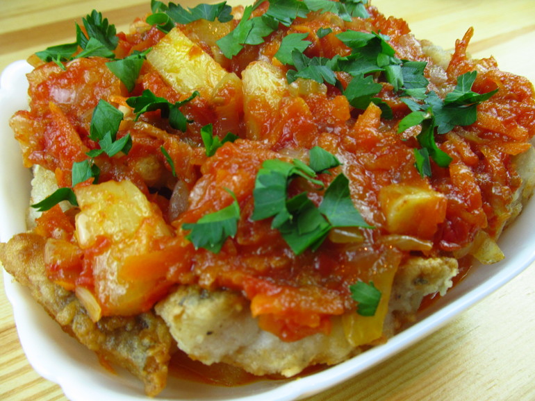 Рецепт приготовления рыбы в томатном соусе с ананасами: