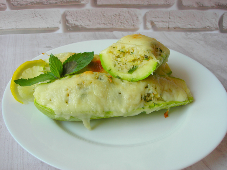 Рецепты для духовкиХочу познакомить вас с рецептом фаршированных кабачков, которые я готовлю весь сезон. Готовим фаршированные кабачки в духовке, получаются они необычными и вкусными. Необычные кабачки потому, что в качестве фарша мы используем не банальный рис и мясо, а набирающий популярность кус-кус. Рецепт без мяса, но блюдо достаточно сытное. Можно есть как в горячем, так и в холодном виде.