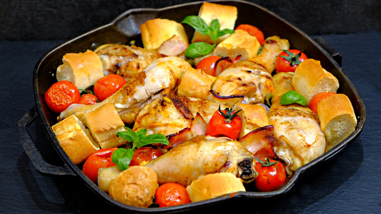 Курочка 3 в 1 – хлеб + овощи + мясо! Сытный ужин быстро и вкусно в одной сковороде