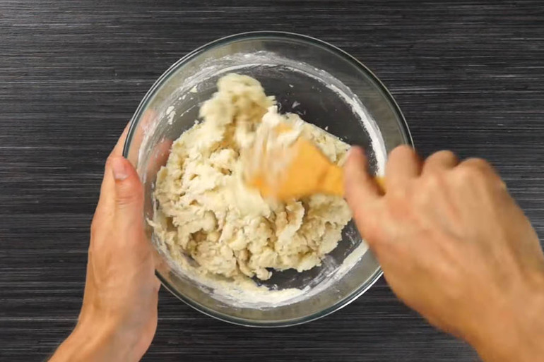 Дрожжи смешайте с тёплой водой, добавьте сахар, соль, яичный белок и растительное масло, хорошо перемешайте. Добавьте муку и вымесите тесто. Тесту дайте постоять в тёплом месте 30 минут.