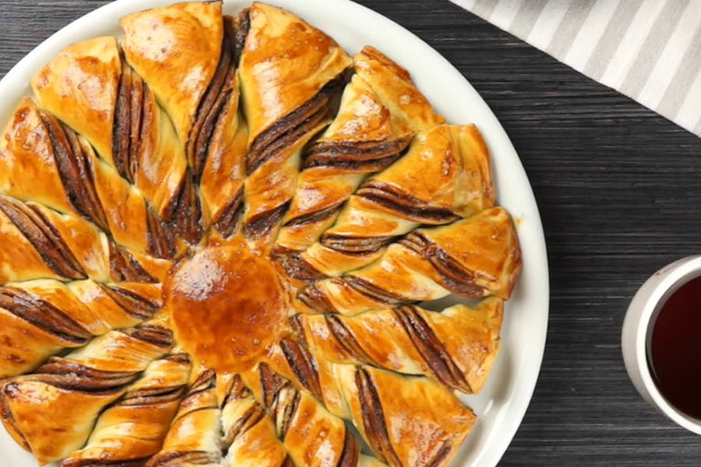 Гости на пороге, а вы не знаете, что подать к чаю? Да, вас всегда может выручить шарлотка или любой другой простой пирог, но это банально! Я предлагаю вам великолепный рецепт десерта, который готовится очень быстро, выглядит неимоверно аппетитно и для него нужны самые банальные продукты + банка нутеллы, которую, кстати, можно заменить на вареную сгущенку!