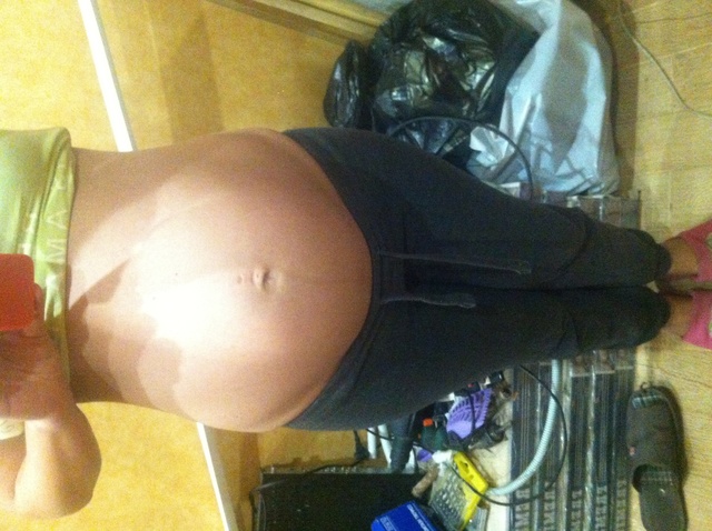блин, ща сфоткала пузень и чуть не упала, у тебя такой маленький и аккуратненький, а у меня здоровый такой, ужас. мелкий проснется сейчас, попрошу подальше сфоткать, а то на расстоянии вытянутой руки не очень смотрится, а зеркала у нас еще нет нигде))))))