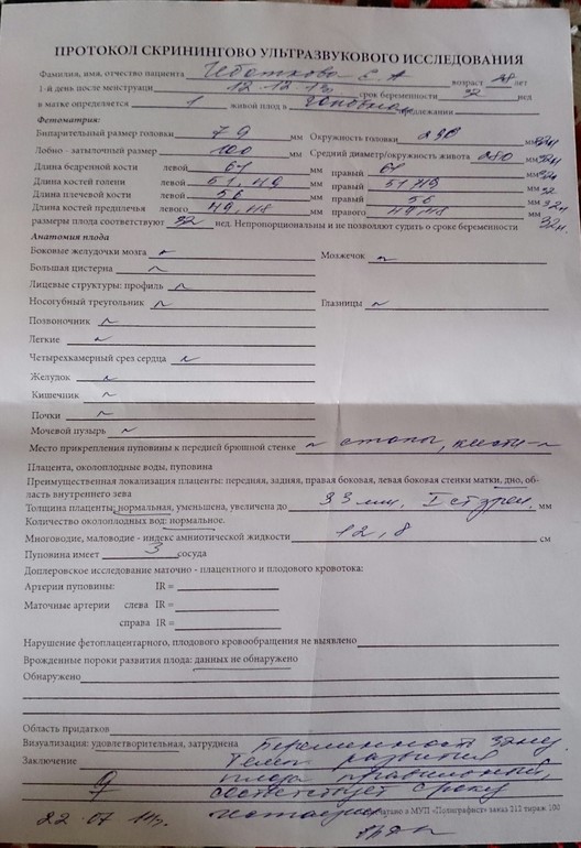 Квалификация врача под бооооольшим вопросом..... Настолько большим, что у неё нет аккредитации (или уж не знаю как правильно называется) на проведение скринингов беременных! это ведь неспроста... Тем не менее - размеры она все сделала!!!! прямо наши, а не от балды...... плюс бонус - фото)))) Однако ж не про высоту шм, ни про сосуды в пуповине, ни про степень зрелости плаценты - ни слова!!!
