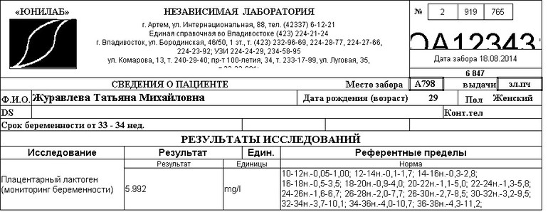 У меня на последнем узи обнаружили нарушение гемодинамики 1а, сказали из-за моих отеков, давления и веса...Сказали прокапаться и пройдет.Я пролежала в больнице и там назначили этот анализ.чтобы следить за состоянием плаценты...Вот сегодня пришел результат, так его ждала, так как до узи еще неделя, вроде граница почти средняя, значит норма???...до врача в понедельник....Успокойте меня, пожалуйста.....
