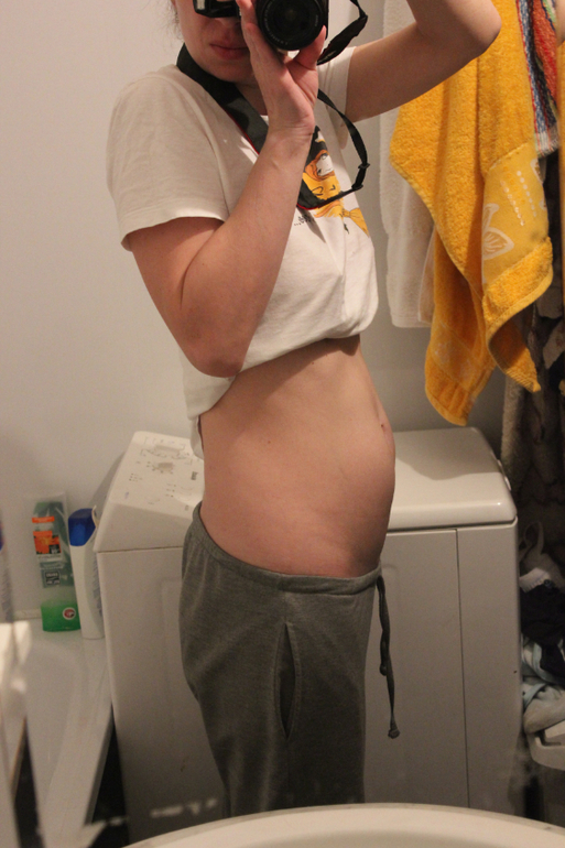А вот мое пузо. Утром еще ничего, а вот вечером оно огромное. Надо сфоткать для сравнения вечером.