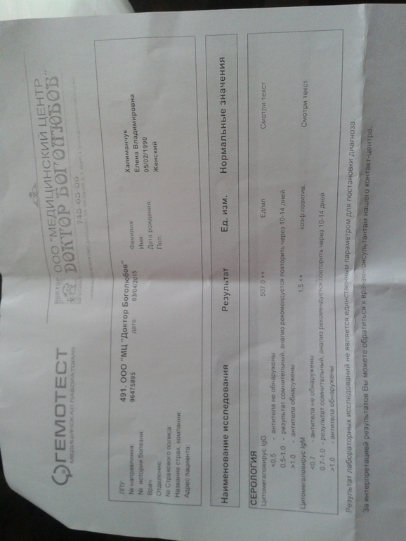 Ну и не переживайте на счёт этого цитомегаловируса. Переделать узи , конечно, надо, разобраться , что с кровотоком. КТГ даже более информативно , для оценки состояния ребенка, чем доплер . А цитомегаловирус все равно не вылечить. Он у вас в неактивной форме .
