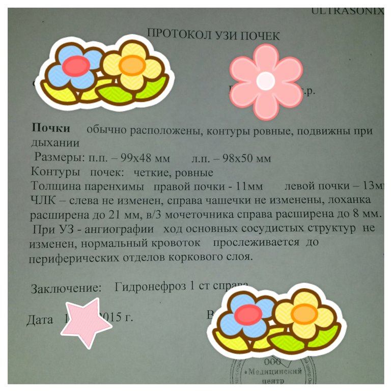Гидронефроз правой почки 1степепи. Отёки. Боль в пояснице.