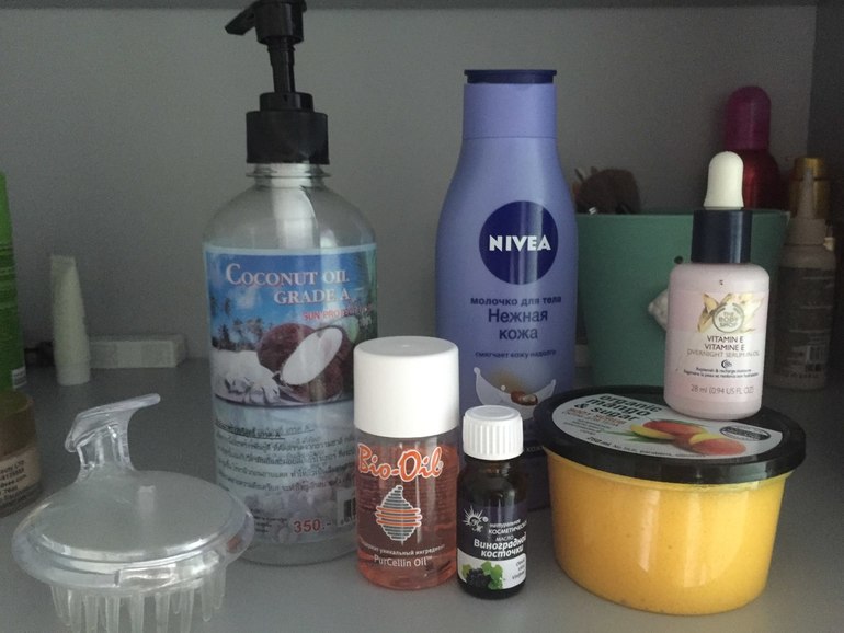 Сейчас для меня абсолютное открытие масло "Bio Oil", оно быстро впитывается и не оставляет жирных следов.