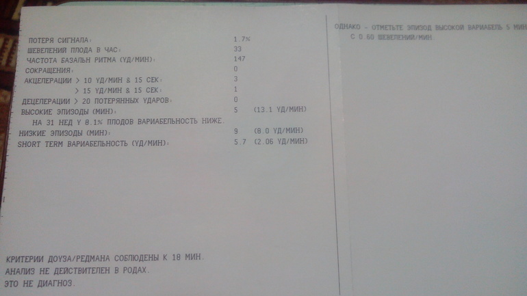 Написано вроде как "критерии соблюдены..." - это норма, чсс 147 - норма, децелераций 0 - тоже норма.. честно не очень разбираюсь, сама всегда читаю свои и ниче понять не могу. а персонал, который делает ктг тоже шибко то и не может пояснить результаты. Меня тоже как напугали 1 раз, давление подскочило, я была готова скорую вызывать. Вы обязательно покажите врачу в ближайшее время, если вашего гинеколога нет на месте, любому другому в больнице, они то уж все пояснят, это чтоб вам лишний раз не переживать.