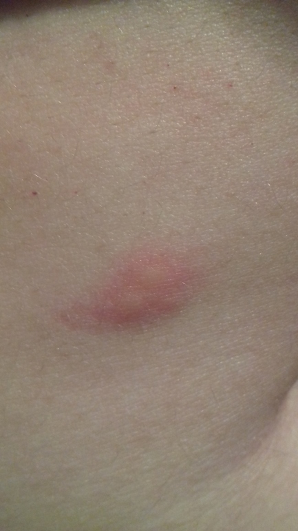 Фото в двух разных местах,на первом нет просто прыщи красные, а второе пятно вроде как беловатое,но и не пузырики