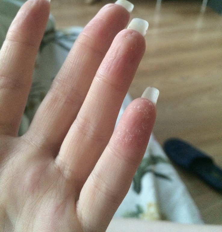 У меня на указательном пальце тоже разъело кожу, как язвочка, больно было даже руки мыть. Помазала бепантеном, начало заживать.