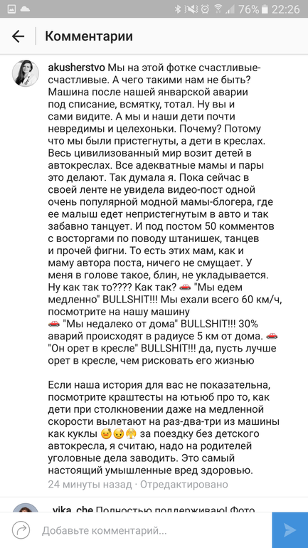 Я за безопасность и полностью поддерживаю автора! За много лет каких только психов мне не попадалось на дороге, в том числе пешеходов. Поэтому мы с супругом сами всегда пристегнуты, в тачки покупаем дополнительно пакет "безопасность", и дочка однозначно будет находиться в авто только в спец.кресле!