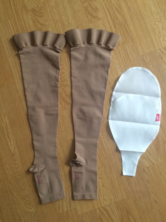 Начну с компрессионных чулков. На ляжке с внутренней стороны еще недель в 16 у меня одна вена стала видна и немного выпирать, хотя вены на этом участке ранее даже не просматривались... Сказала гинекологу, мне были прописаны компрессионные чулки 1 степени компрессии. Долгое время я тянула с покупкой, т.к. неохота ходить летом в чулках, да еще и покупать их за 6 тысяч( Поворотным для меня моментом стал разговор с девочкой, у которой я с Авито брала комод и кроватку. Она сама худышка, ножки красивые и никаких признаков варикоза. Разговорились с ней про чулки, она тоже с первым ребенком не носила, но у нее развился внутренний варикоз и одна вена просто лопнула!!! В итоге гематома была здоровая и проходила 4 года... Вопрос был решен для меня :) Т.к. я еще и не худенькая до кучи и у меня есть несколько малюсеньких звездочек. Лучше потерплю, чем потом ноги скрывать всю жизнь. Выбор мой пал на фирму немецкую фирму Medi, т.к. у них все по международным стандартам сертифицировано и вроде не рвутся. Натягиваются на ноги в принципе нормально, я ожидала худшего)) Плотные, правда, но куда деваться...